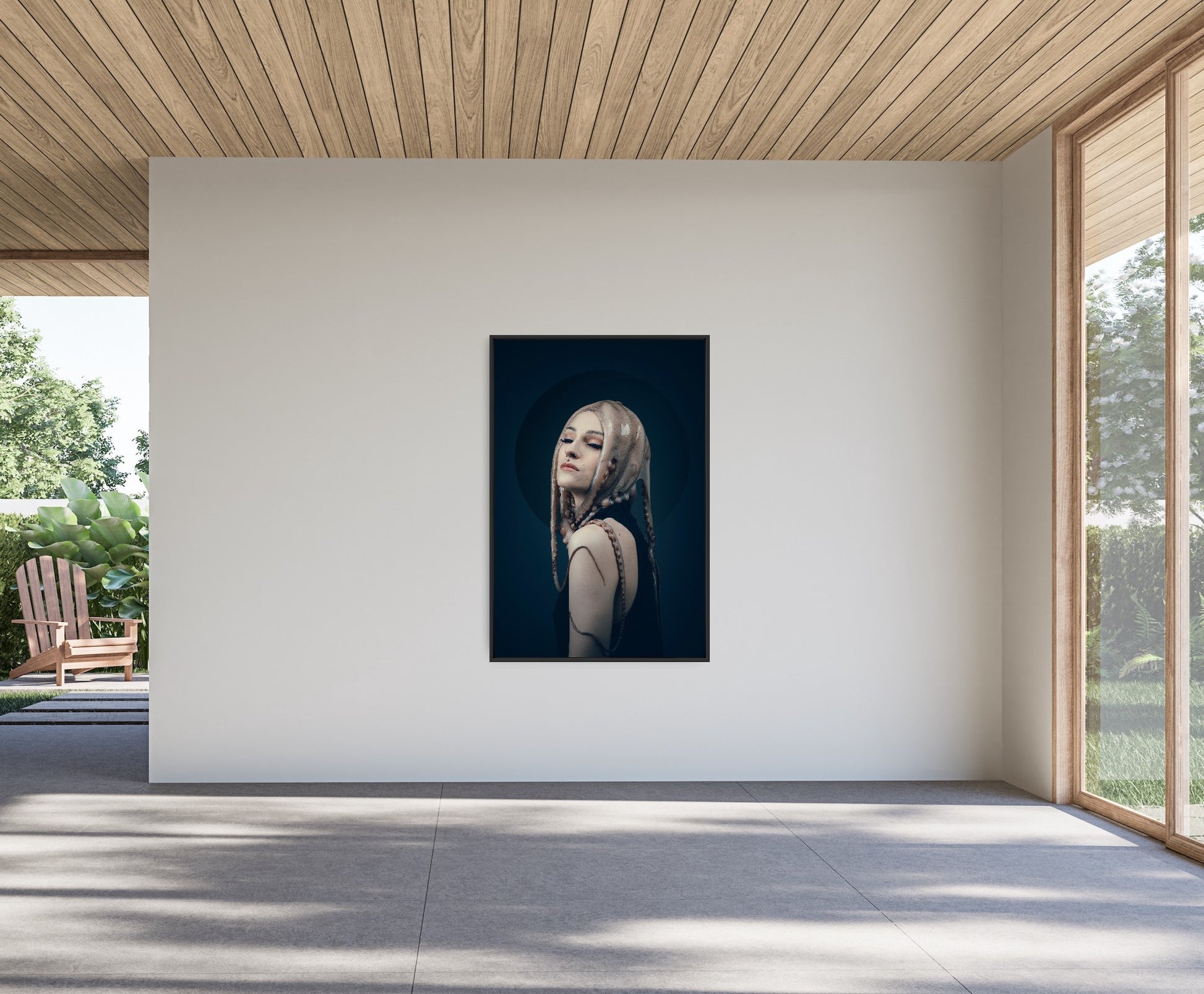 Imprimée sur Dibond et montée sur caisse américaine, l'œuvre prend forme, brute et élégante.